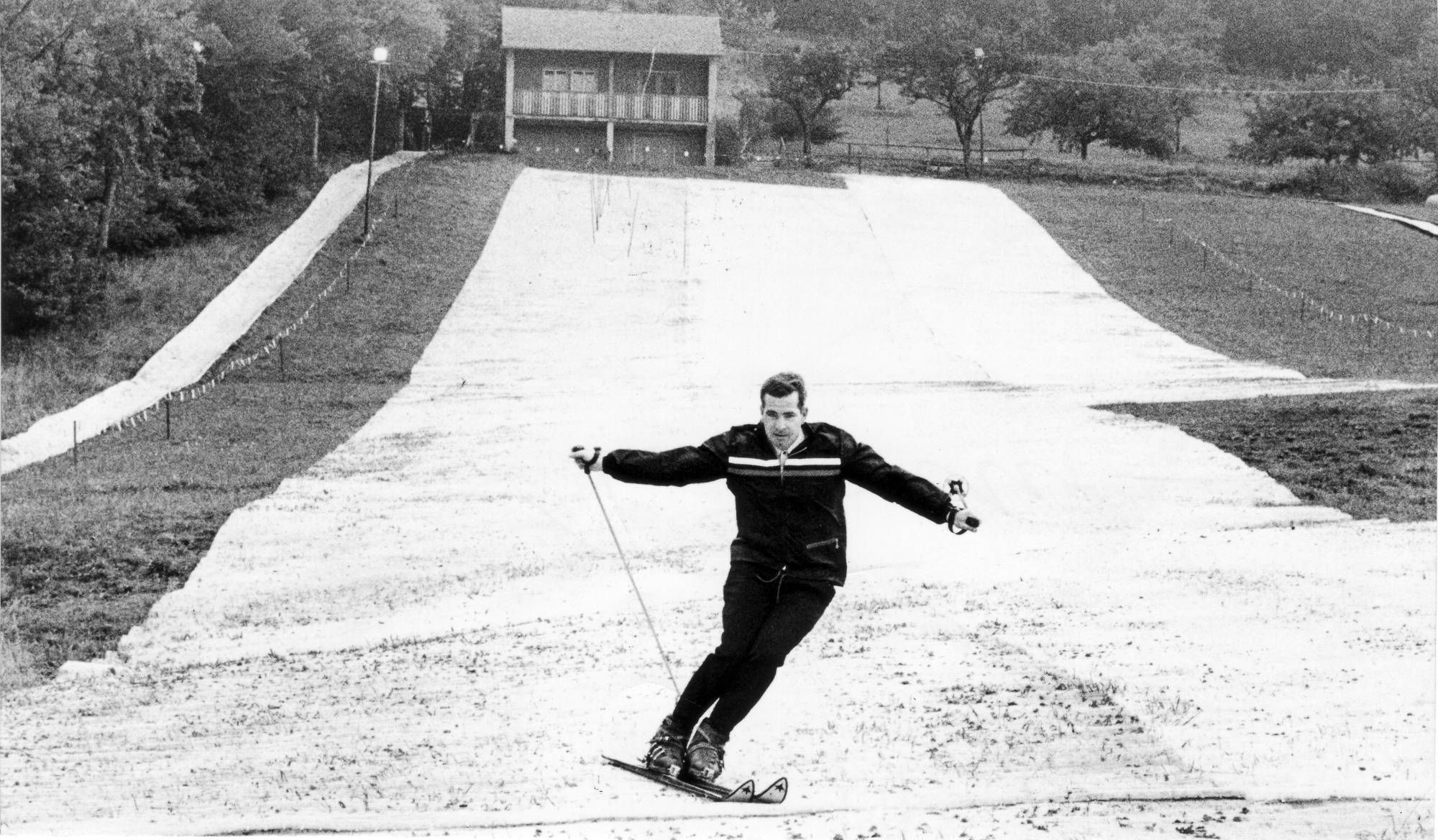 Der erste der nach der offiziellen Freigabe seine Schwünge über die Kunstpiste zog war Pfarrer Konrad Konrad Ringl, den man auch über vierzig Jahre später, dann allerdings auf Naturschnee, am Rothenberg beim Skisport sieht.