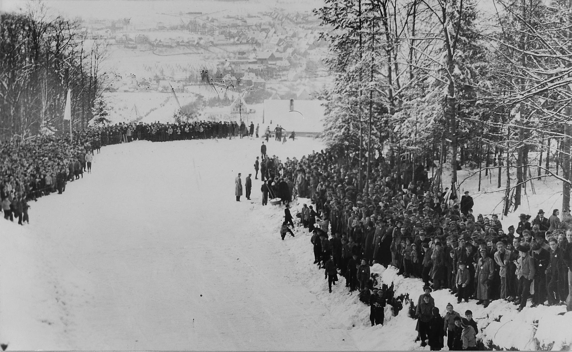 Es ist so weit Und dann ist es endlich so weit, am 03. Februar 1952 beginnt um 14:00 Uhr das Eröffnungsspringen auf der neu erbauten Rothenbergschanze. Zirka 4.000 Zuschauer haben sich eingefunden, zum Teil mit Sonderzügen von Nürnberg nach Schnaittach gebracht. (2.371,40 DM kamen aus Eintrittsgeldern ein!)