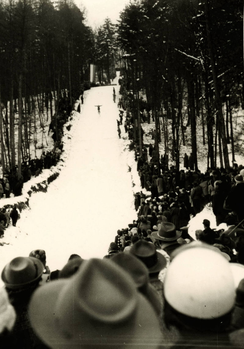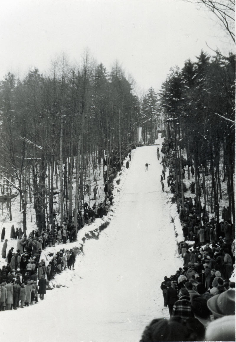 Die Markanteste Epoche, und wohl auch der Bekanntheit des Rothenberg als Wintersportberg förderlichste, war ohne Zweifel die Rothenbergschanze. Der Traum vieler Wintersportbegeisterten die sich in den 30’iger Jahren des Vergangenen Jahrhunderts zum Skilauf am Rothenberg trafen war der Bau einer Sprungschanze. Im Dezember 1935 werden auf einer provisorischen Schanze am Platz des heutigen Sanitätshauses am Rothenberg die ersten Probesprünge gemacht. Anfang Februar 1936 wird vor dem Gasthaus Kaulbersch ein Holzgerüst aufgestellt, so dass Weiten von 12 – 14 Meter gesprungen werden können.