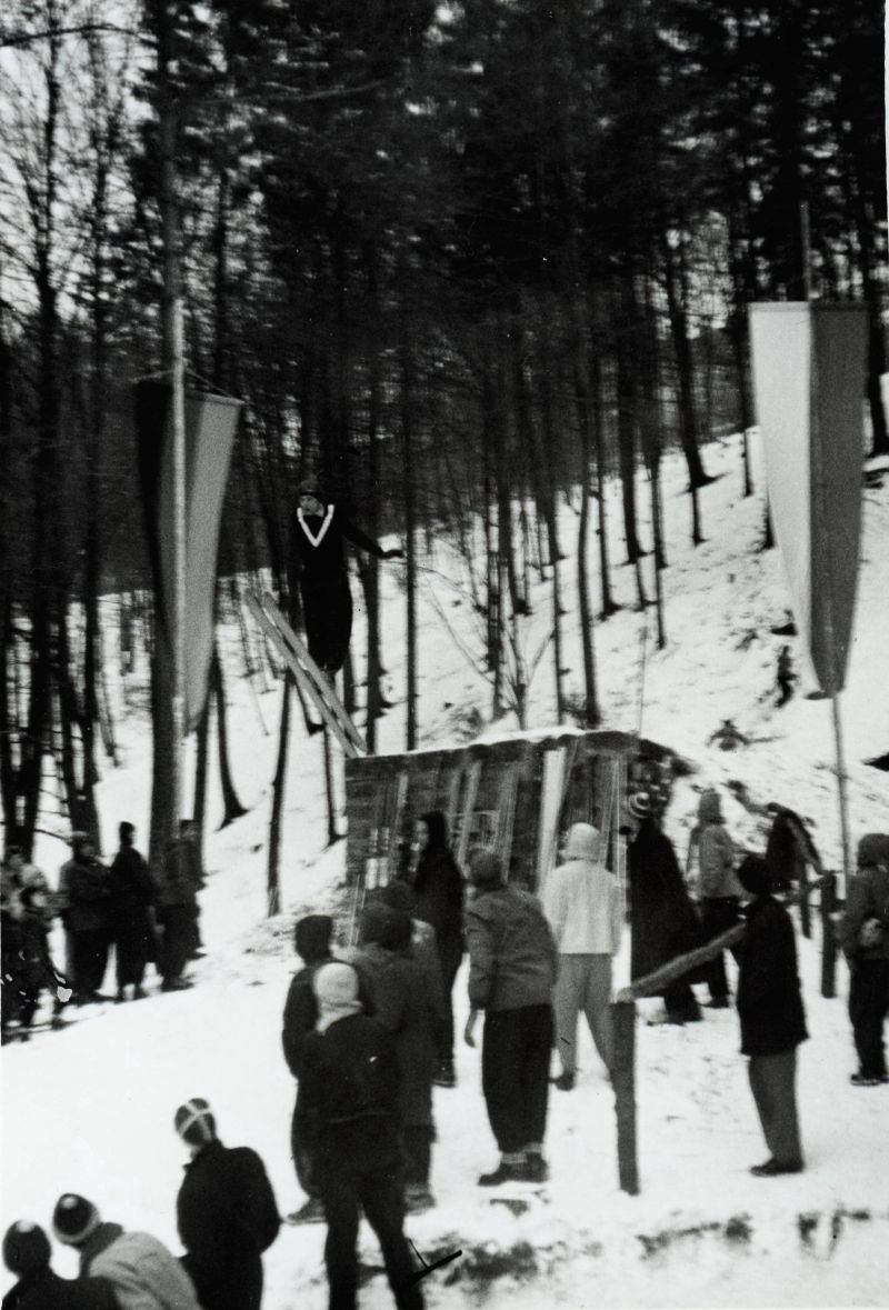 Die Mattenschanze Über drei Jahre hinweg (1966, 67 und 68) müssen dann sämtliche Sprungver- anstaltungen im Winter ausfallen. Im Juni 1968 belegt man schließlich die Schanze mit Kunststoffmatten. Werner Seibold aus Artelshofen, jetzt neues Vereinsmitglied beim Skiclub Rothenberg, macht am 15.12.1968 den ersten Sprung auf der Mattenschanze und erreicht 36,00 Meter. Die Matten bilden auch die Unterlage für die Jurafränkische Gaumeisterschaft im Januar 1969. Aber es gibt Schwierigkeiten. Die Kunststoffmatte beginnt zu vibrieren, der Schnee kommt teilweise in Bewegung. Bei einem Wertungssprung von Georg Buchner löst sich unmittelbar nach seinem aufsetzen eine mehrere Quadratmeter Große Schneefläche und rutscht zu Tal. Neu auf die Schanze geworfener Schnee muss erst festgetreten werden, was zu erheblichen Verzögerungen im Wettkampfablauf sorgt. Besser läuft es beim Pokalspringen im Februar 1969, diesmal hält der Schnee auf der Matte.
